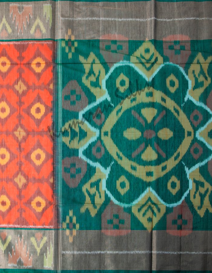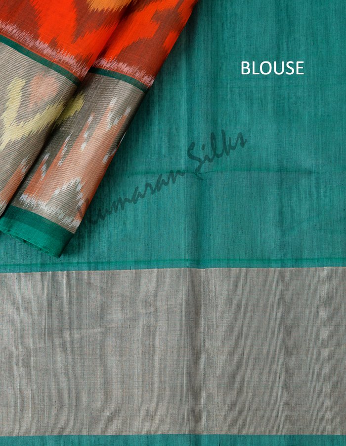Orange Pochampally Silk Cotton Saree With Ikat Border 02