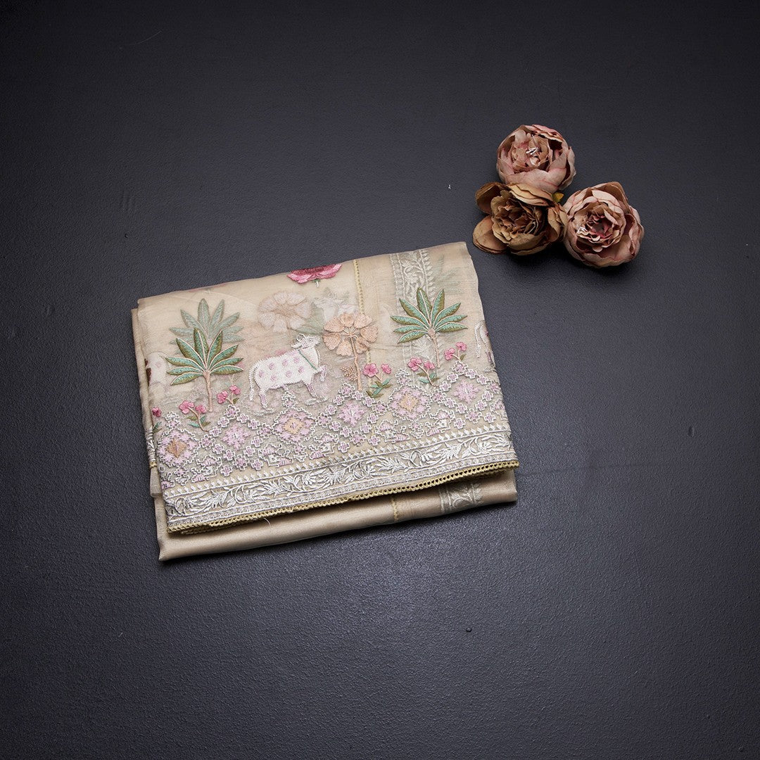 Organza Cream Traditional Thread Work Saree