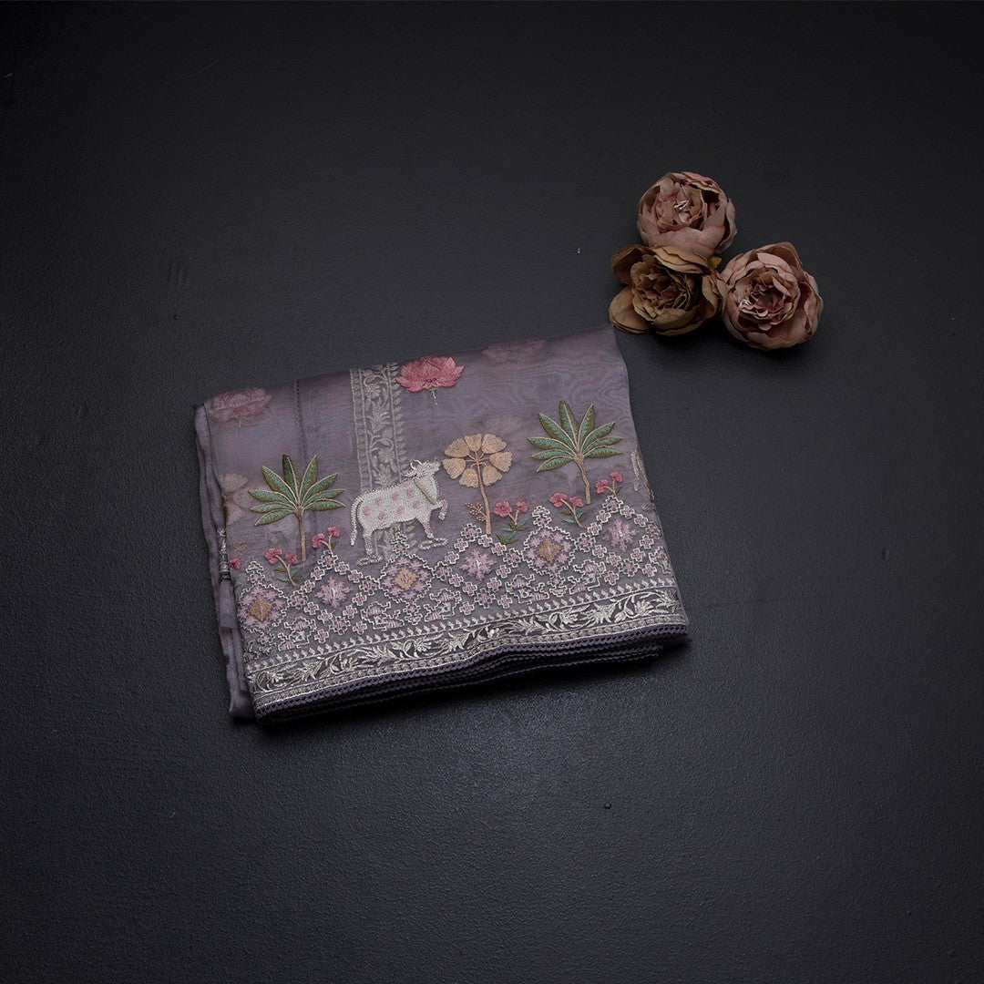 Organza Lavender Traditional Thread Work Saree