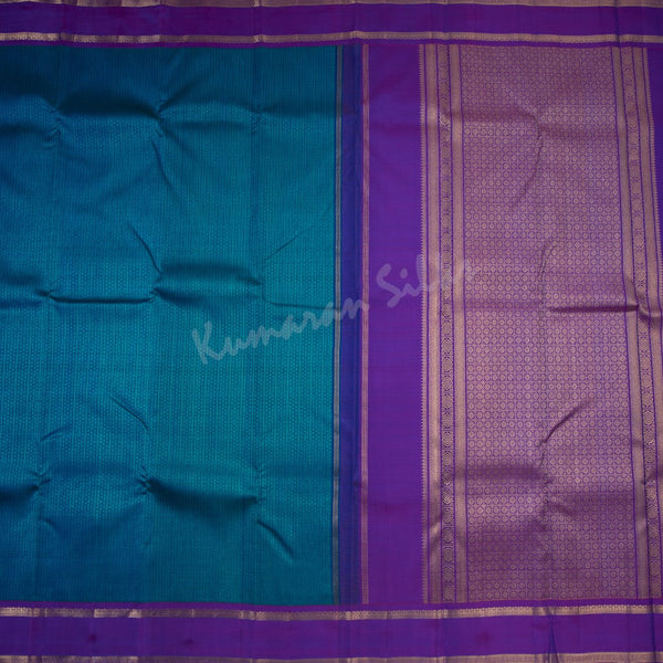 Peacock Blue Thread Work Silk Saree With Multi Design And Purple Border, Handloom silk sarees woven from the looms of Kanchipuram with traditional motifs and beautiful zari patterns with 1 Gram Zari