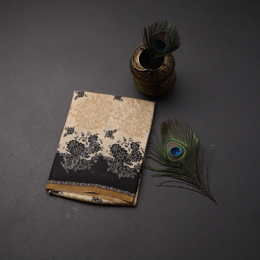 Pure Silk Printed Cream Saree 02