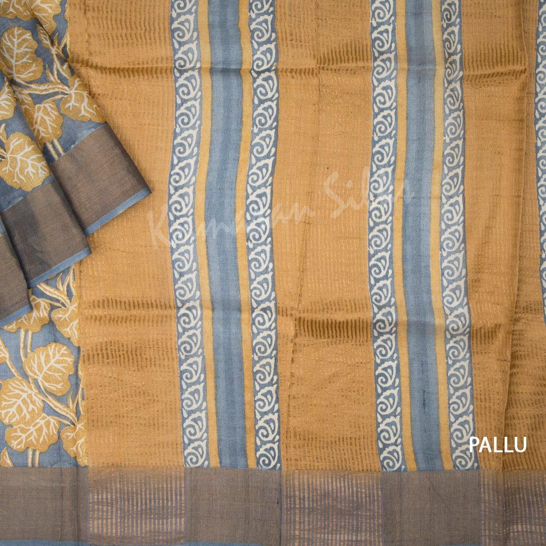 Pure Tussar Greyish Blue Leaf Printed Saree