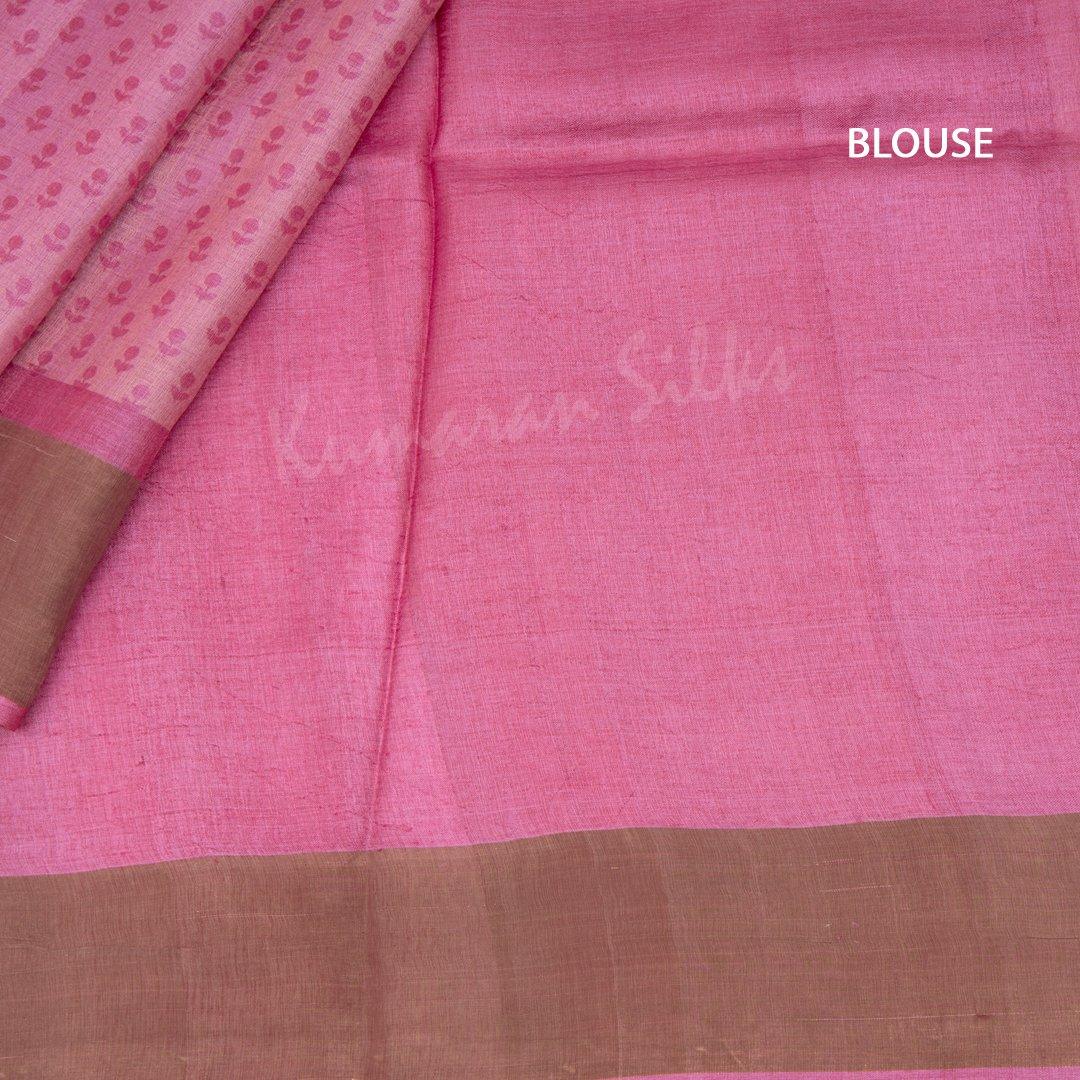 Pure Tussar Pink Floral Printed Saree - Kumaran Silks