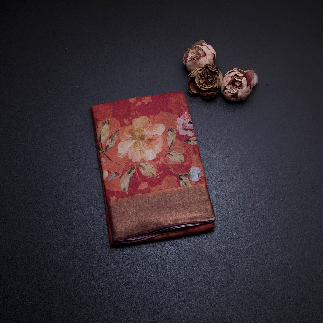 Pure Tussar Red Floral Printed Saree 02