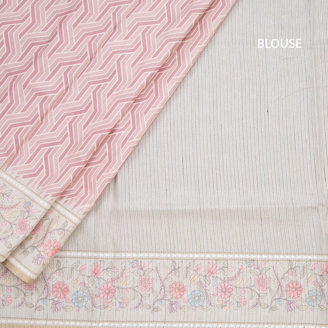 Raw Silk Onion Pink Printed Saree With Floral Border