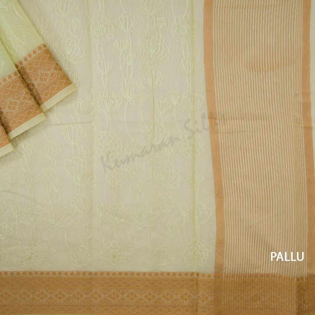 Semi Linen Pista Green Embroidered Saree With Floral Design On The Body