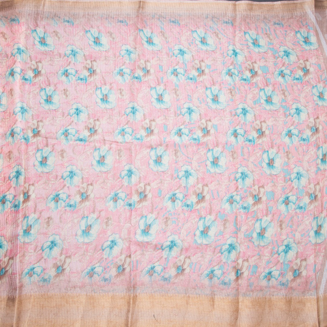 Semi Raw Silk Baby Pink Printed With Zari Stripes Saree