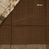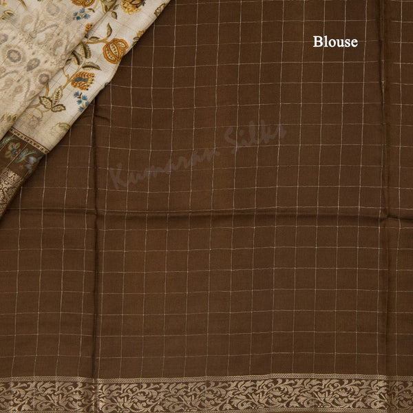 Semi Raw Silk Cream Checked Printed Saree With Floral Creeper Design