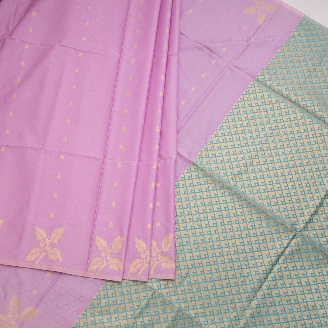 Semi Soft Silk Lilac Purple Thread Work Saree With Zari Buttas