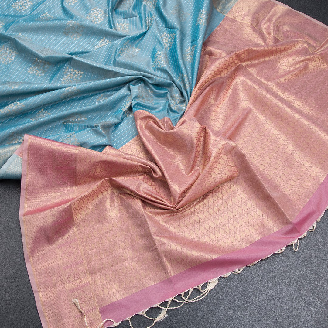 Semi Soft Silk Powder Blue Zari Worked Saree 02