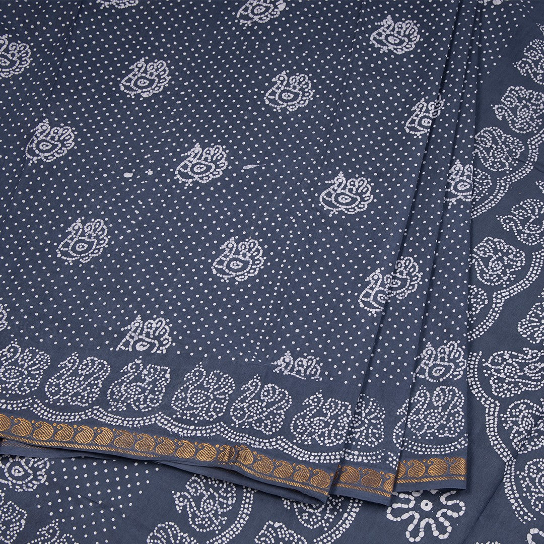 Sungudi Cotton Dark Blue Printed Saree Without Blouse