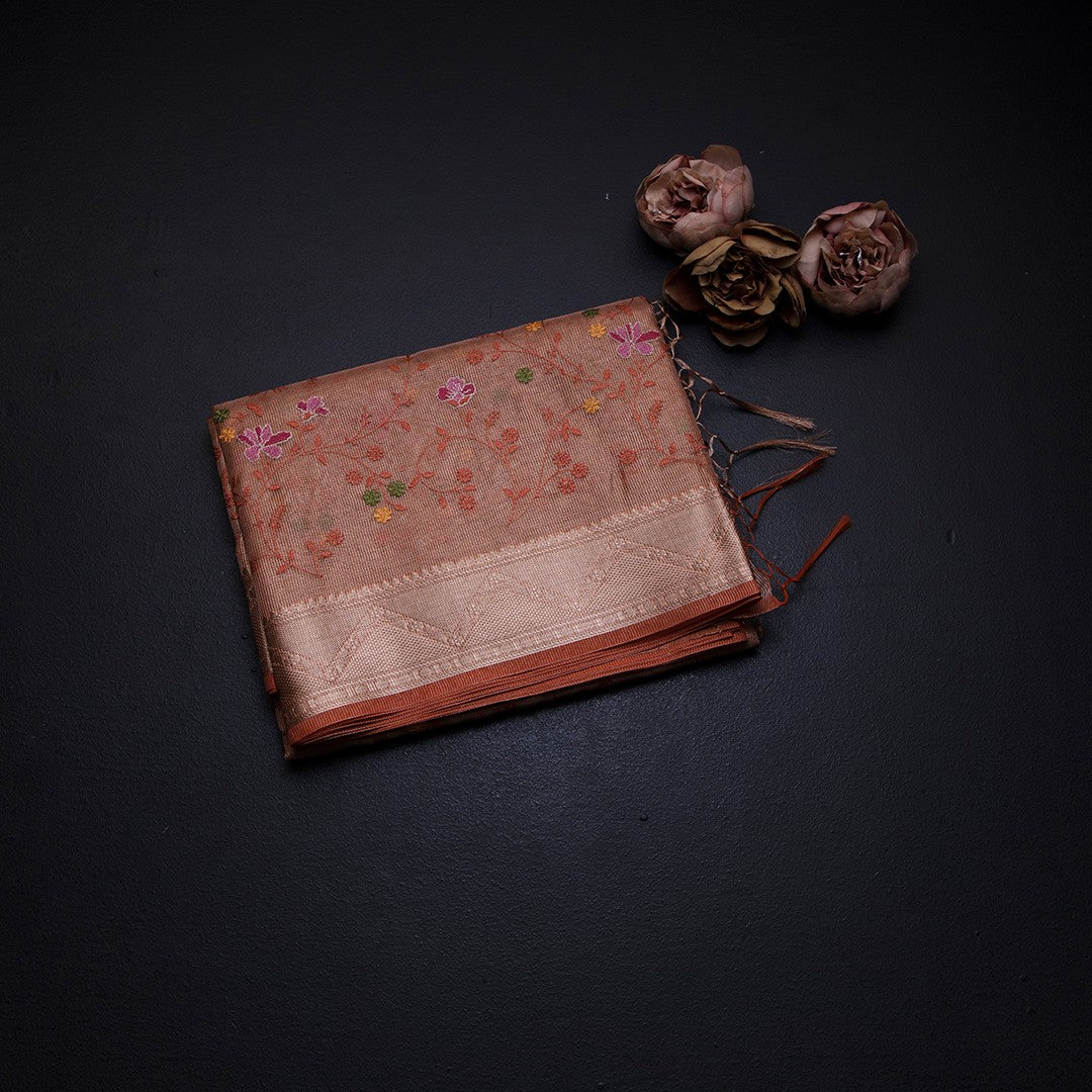 Tissue Kota Orange Thread Work Saree With Zari Border
