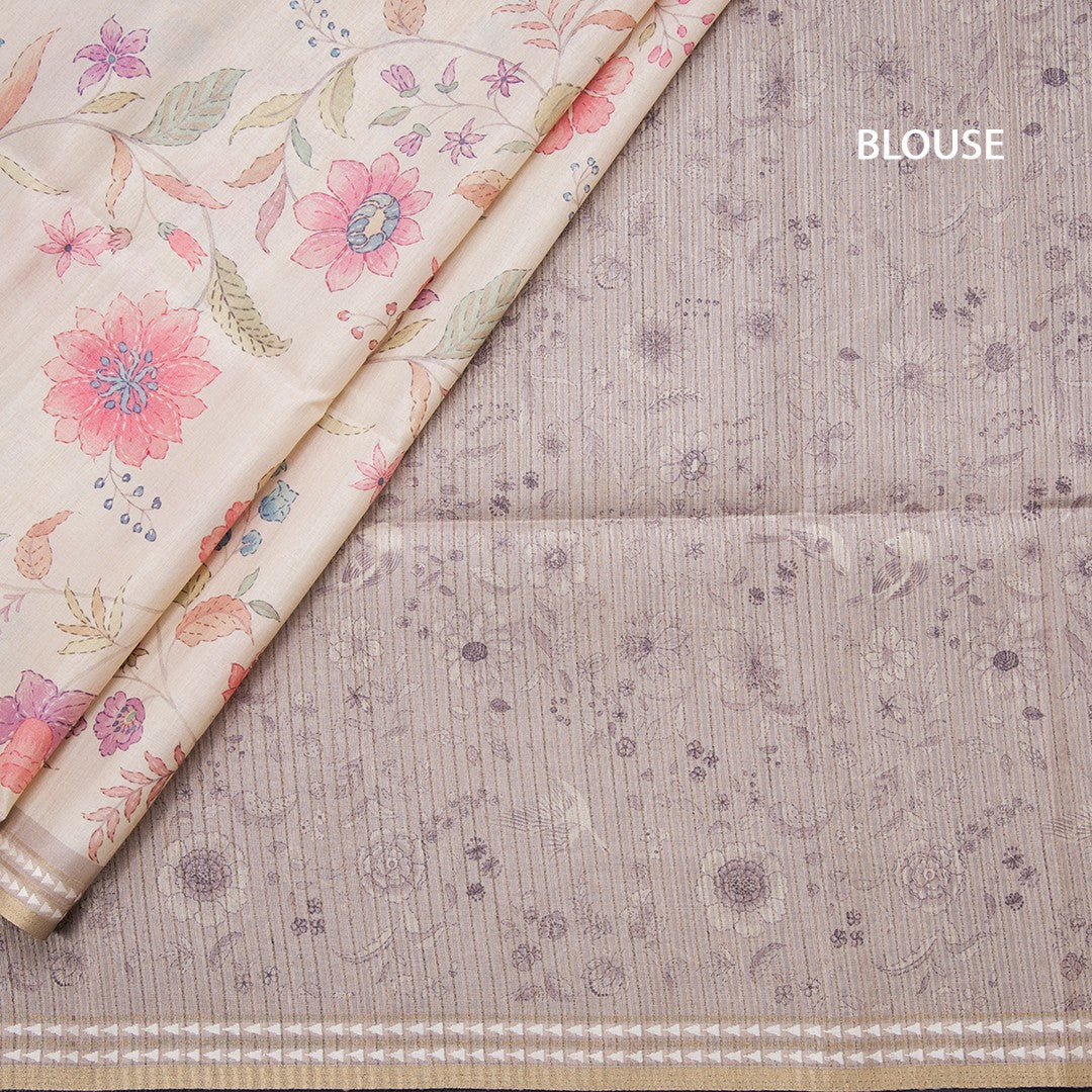 Tussar Cream Floral Printed Saree 02