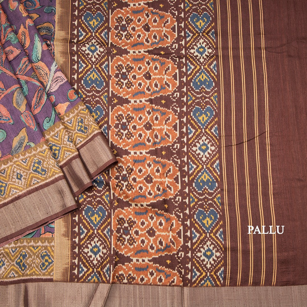 Tussar Dark Purple Floral Printed Saree