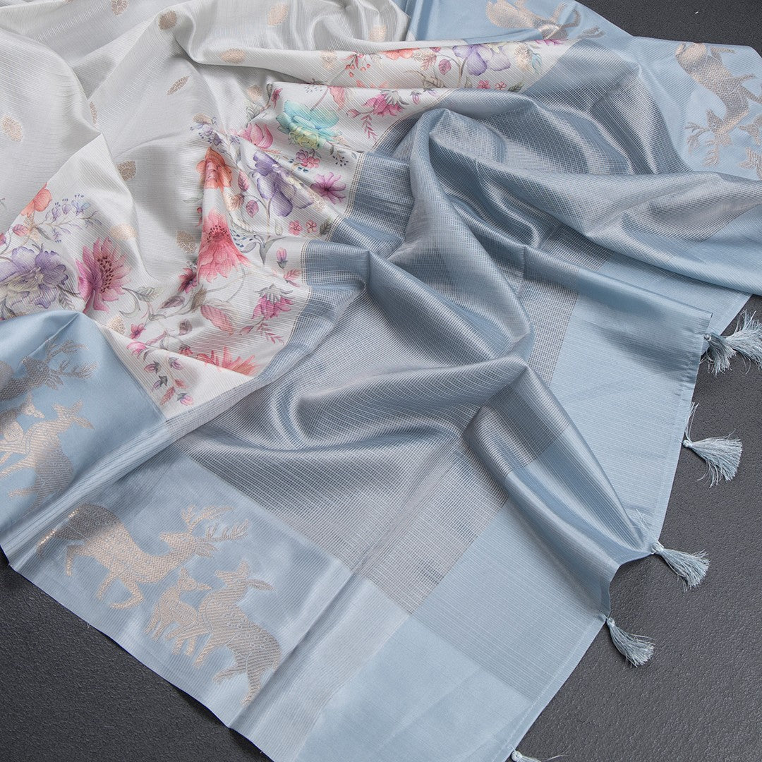 Tussar Very Light Pista Green Saree Zari With Printed Design 02